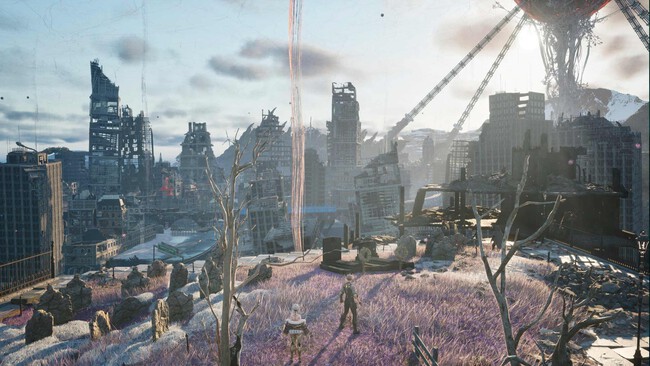 Ahora, debemos decir que la gran apuesta de Bandai Namco con Code Vein II es su mundo abierto. Ciudades hundidas, bosques mágicos, tierras baldías con bases militares y paisajes postapocalípticos se despliegan ante ti como un mosaico de ruinas. Es un escenario hermoso y roto a la vez.
